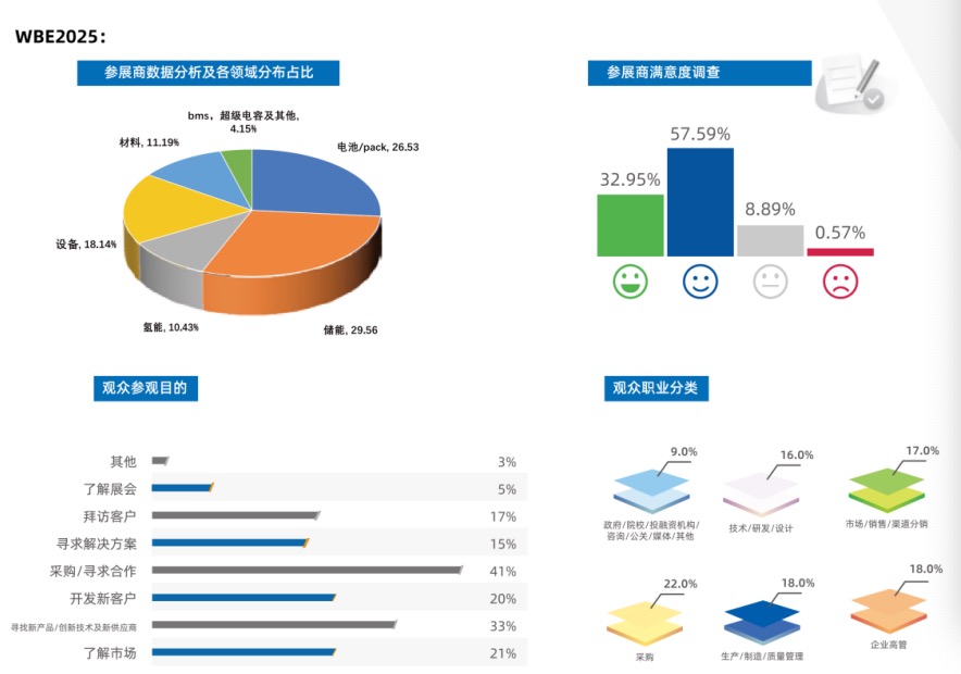 WBE2025第10届世界电池及储能产业博览会暨亚太电池展/亚太储能展于2025年8月8-10日在广州广交会展馆成功举办,总展览面积约13.5万平方米,汇聚1500多家参展企业,构建全产业链生态展示与商贸对接平台。本届展会共接待专业观众20万人次参与,其中来自全球100多个国家和地区的国际采购商13892人次。本届博览会形成电池、储能、氢能、光伏、材料、设备、配套装备等全产业链生态闭环,为全球电池、储能产业链制造商及应用端买家群搭建展示、交流与贸易平台。