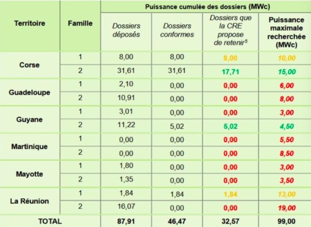 五个中标项目分别位于法国的海外领土及科西嘉岛。其中,阿库奥能源公司位于科西嘉岛阿莱里亚的弗拉索内项目获得了17.7兆瓦的容量,为最大中标项目。其他中标者包括索莱尔通用公司、沃尔塔利亚公司及阿尔比奥马印度洋太阳能公司等,项目地点分布于科西嘉岛、法属圭亚那和留尼汪岛。