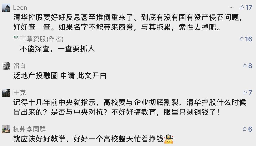 △  文章《 受紫光集团和启迪控股拖累,清华控股危在旦夕》的读者留言(可点击标题查看)。