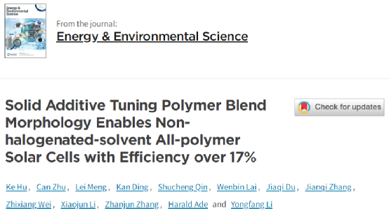 全聚合物太阳能电池(all-PSCs)由于其优越的器件稳定性和机械鲁棒性而引起了相当大的兴趣。最近,得益于聚合小分子受体的发展,全PSCs已经实现了超过17%的高功率转换效率(PCE)。然而,大多数全 PSC 都是用对环境有害的卤代溶剂处理的。