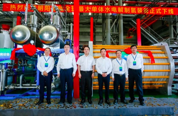 10月13日,明阳智慧能源集团股份公司全球最大单体碱性水电解制氢装备在广东下线。