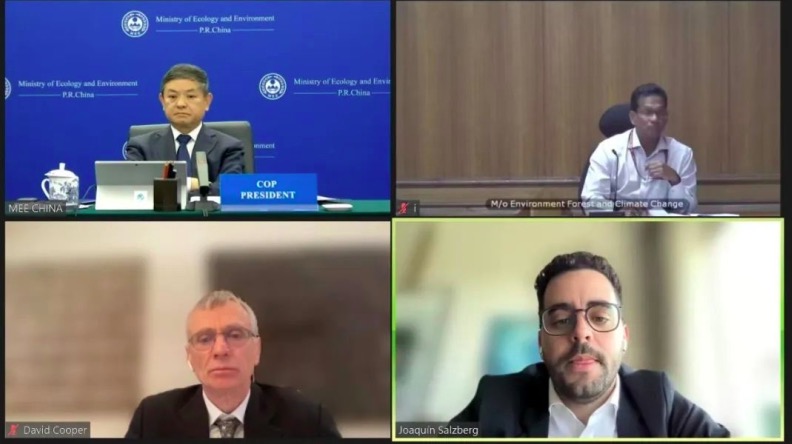 10月13日,《生物多样性公约》缔约方大会第十五次会议(COP15)主席、生态环境部部长黄润秋以视频形式主持召开《生物多样性公约》缔约方大会主席团会议。会议围绕COP15第二阶段会议、“2020年后全球生物多样性框架”(以下简称“框架”)不限成员名额工作组(WG2020)第五次会议筹备等事项展开讨论。