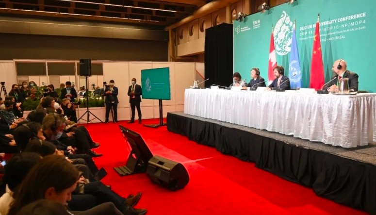 当地时间12月17日,《生物多样性公约》第十五次缔约方大会(COP15)第二阶段会议在加拿大蒙特利尔举行第三场新闻发布会。COP15主席、生态环境部部长黄润秋,加拿大环境与气候变化部长吉尔博,联合国《生物多样性公约》(以下简称《公约》)秘书处执行秘书穆雷玛出席发布会,并回答了记者提问。