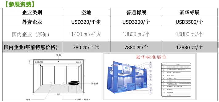 2、双面开口标准展位角位费:国内企业RMB500元/个,外资企业加收10%;