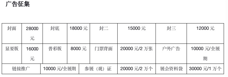 会刊广告:规格(130 mm× 210 mm)派发对象为参展商、采购商、设计院、商协会及专业人士。