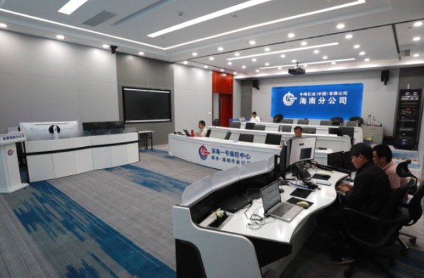 位于海南海口市的“深海一号”操控中心,操作人员可在台风期间由平台撤回陆地后在此操作“深海一号”能源站持续生产,技术专家也可在此连线现场对关键设备维保提供远程技术支持