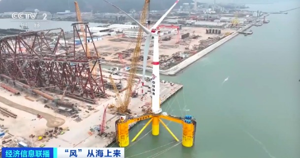某智慧能源集团股份公司漂浮式产品设计平台总工程师 王超:因为台风是从海上来,如果要走向深远海,面临的最大挑战就是台风的风速更大,遇到了极端海况的浪高更恶劣,这都是我们要在做深远海漂浮式风机中必须解决的技术难点。