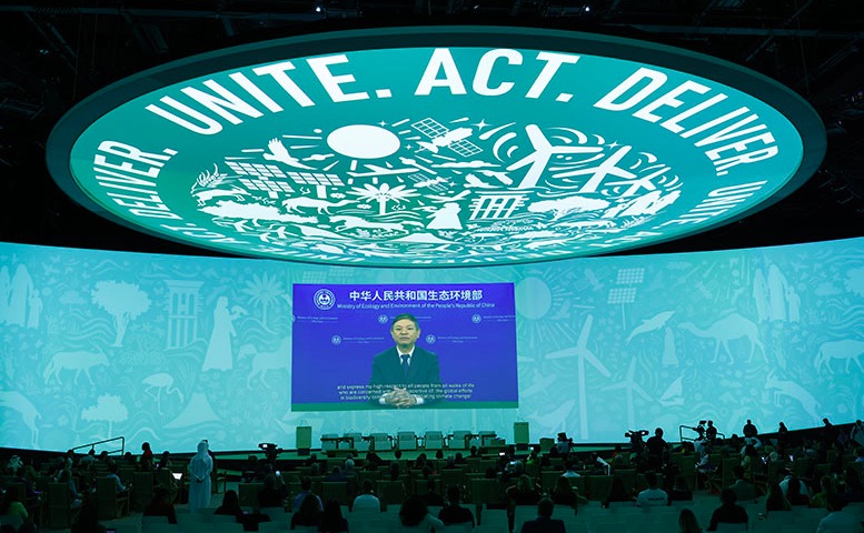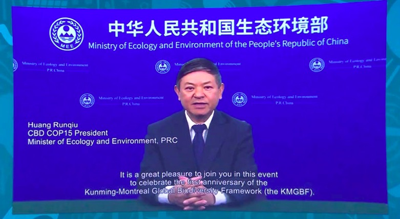 2023年12月9日,在《联合国气候变化框架公约》第二十八次缔约方大会(COP28)“自然日”期间,生态环境部部长黄润秋视频出席推动实施“昆明-蒙特利尔全球生物多样性框架”(以下简称“昆蒙框架”)下“3030目标”高级别活动,并以《生物多样性公约》第十五次缔约方大会(COP15)主席身份宣布牵头发起“昆蒙框架”实施倡议。