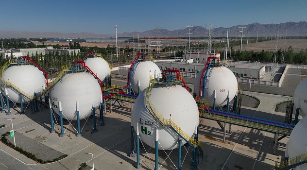 中国石化绿氢示范项目制氢厂储氢罐区 新华社图文