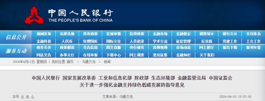 近日,中国人民银行联合国家发展改革委、工业和信息化部、财政部、生态环境部、金融监管总局和中国证监会印发《关于进一步强化金融支持绿色低碳发展的指导意见》(简称《指导意见》),做好绿色金融大文章,积极支持绿色低碳发展。