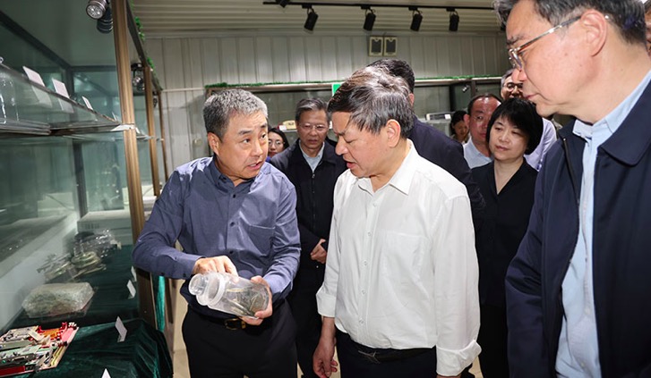 随后,黄润秋前往华新绿源环保股份有限公司,调研固体废物资源化利用情况。他深入废弃电器电子产品拆解处理车间,现场了解拆解工艺、流程及危险废物无害化处置等情况。黄润秋强调,要加快构建废弃物循环利用体系,不断探索完善市场化、社会化机制,畅通再生资源回收渠道,推动废弃物产品规范回收利用和安全处置,引导和激励全社会践行绿色低碳生活方式,促进节约集约、绿色低碳发展。