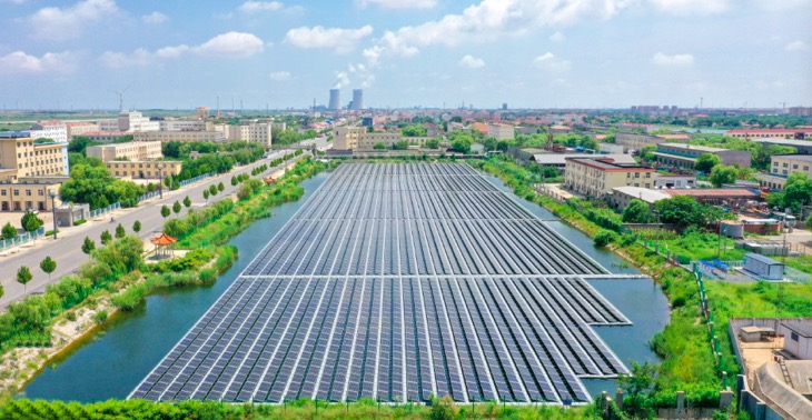 江汉油田在老油区清河采油厂建设的水上漂浮式光伏项目
