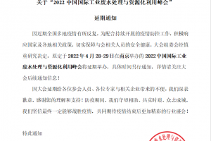 关于“2022中国国际工业废水处理与资源化利用峰会”延期通知如下: