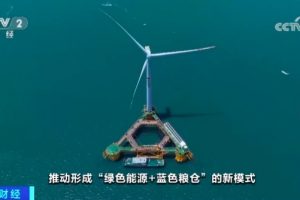 在福建莆田南日镇海上风电场,全球首座风渔融合浮式平台正式投产。平台不但能产生绿色电力,还是一座“蓝色粮仓”,实…
