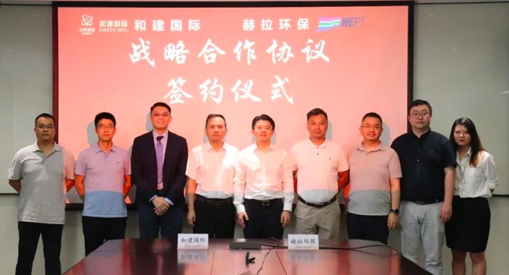 赫拉环保总经理沈捷、和建国际副总经理周莘惟及相关业务部门负责人参加签约仪式。